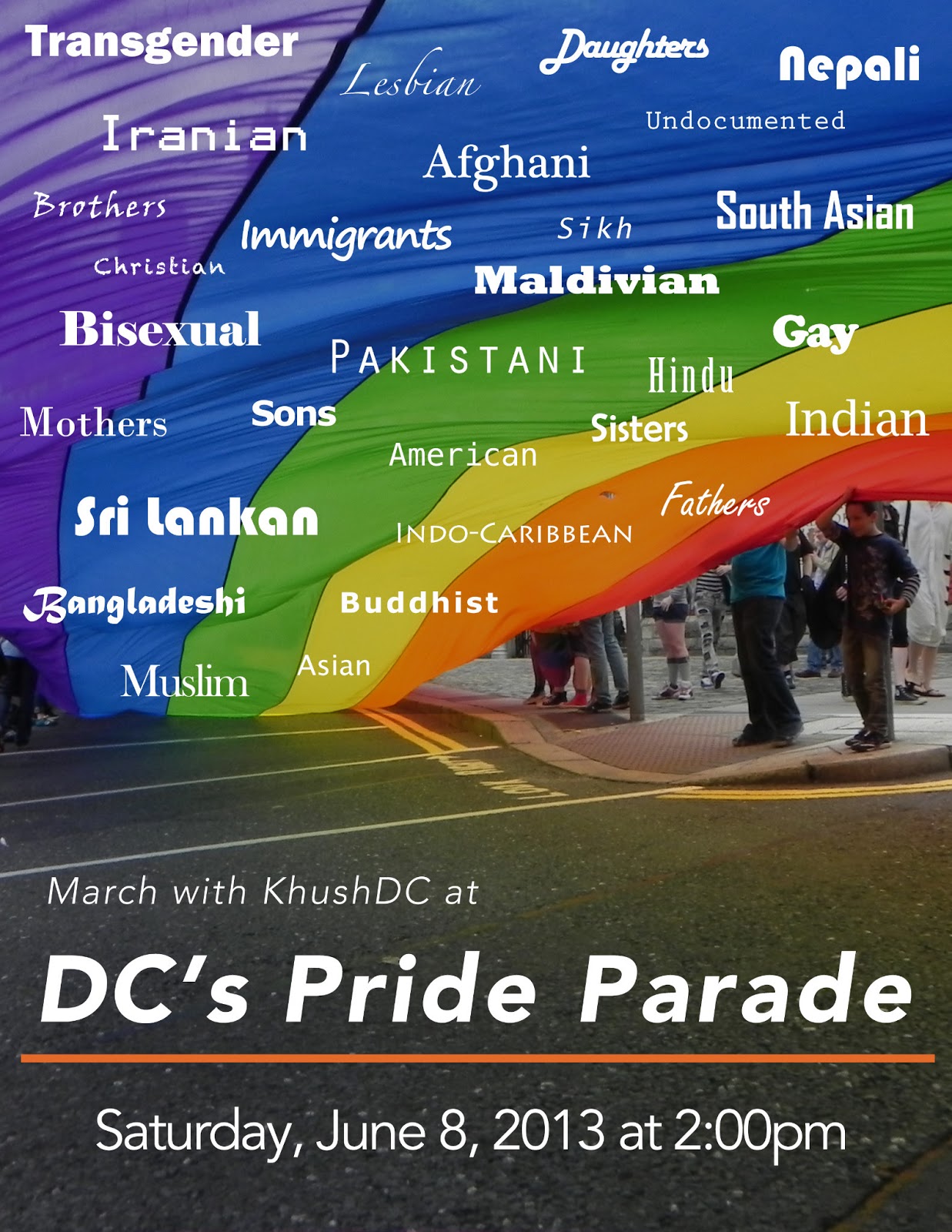 - Saturday, June 8 at 2pm: March with KhushDC at the Pride Parade